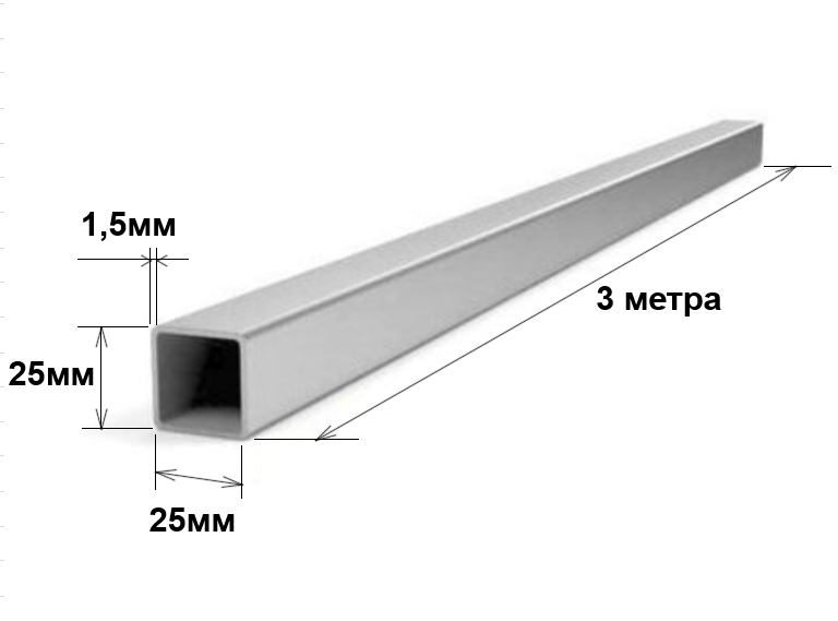 Труба профильная квадратная сечением 25мм х 25мм. Толщина стенки 1.5мм, длина 3 метра. Вес 1шт 3.21кг.