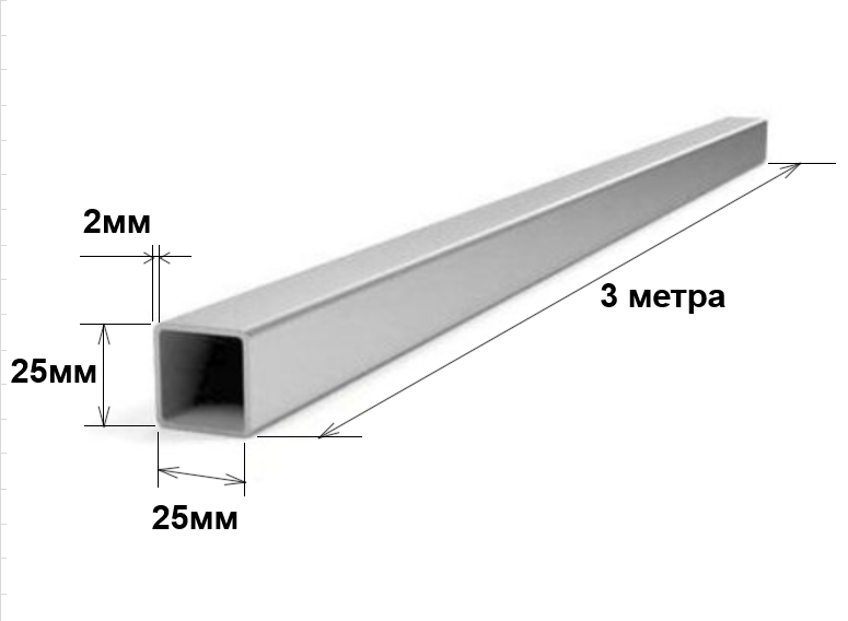 Труба профильная квадратная сечением 25мм х 25мм. Толщина стенки 2мм, длина 3 метра. Вес 1шт 4.17кг.